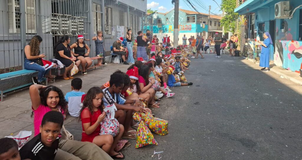 “Temos vários anos realizando esta celebração de Natal com a irmã Laure”, explica Adriana Queiroz, presidenta da Misturaí. “Ela sempre traz um cronograma pensado para motivar as crianças, que inclui um espaço de reflexão sobre a importância do Natal.”